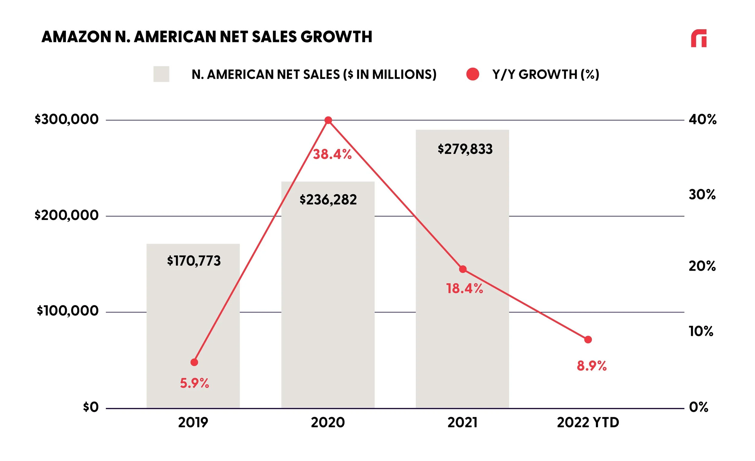 For context, Amazon reported North American net sales growth of 38% in 2020 and 18% growth in 2021. Those figures compare to just 6% growth pre-pandemic in 2019. Year-to-date in 2022 (1Q and 2Q), growth has decelerated to 9%. Even though growth rates impressively stand above pre-pandemic levels, this relative deceleration can be expected given Amazon is now lapping those high double-digit, pandemic-driven growth rates from 2020 and 2021.